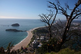 Some photos of our paradise. At the top is our local beach at Omanu . Below that is a view from the top of Mauao - “The Mount” and to the right is Mauao seen from the beach